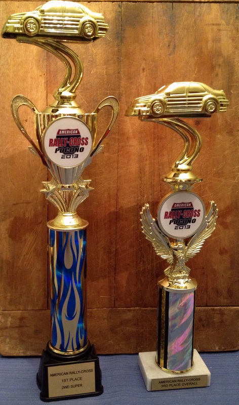 Some of the trophies of 2013, 1st @ Hyper-fest, 1st at American Rally-Cross, and a season 3rd in ARC 2WD and 8th overall earning the #8 for the NASA season 2014