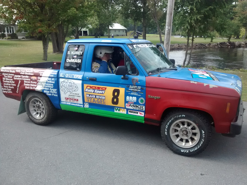 All I can say here is wow this rally was an extreme challenge for many reasons. Recovering from an off mechanical failure at ESPR and rebuilding the nose of the ranger, too not having my team my Crew Chief Mark Sharp recovering from a heart attack Surgery in January and now caring for his Terminal ill Mother, and my co-driver Steven Kurey and having to get a last minute replacement Matt James. We pushed on as they wanted me to and got the ranger ready for rally on time and in great shape. My team of few but very dedicated friends, and family really made this happen. STPR we went. This event has history as its been years, volunteering for 5 as a safety sweep and this was our time to shine and beat the forest of PA. the weekend started off very good as the Ranger V8 stretched its lungs Practice, we had an overheating issue from off the trailer, but we managed and with repairs and between stage services we pushed on at some point the engine was running so hot we could bake bread at an average of 270 degrees this caused an ignition pop-back and made sounds of artillery fire with fireballs out the tailpipes as the ignition would cycle on and off from the extreme heat. We managed. over night we worked on the coolant system found small things but nothing out rite broken, so day two. started off very off kilter as we were hit by the media, NBC-SN and Wellsboro Home Page, STPR media, Worldwide Rally Ford Fans, We were grateful for the attention but it was some thing we were not used to. the stages of day 2 started good managing our engine heat by ruining hard in some areas and driving threw in others we were able to keep up good times and make time on the car in front of us an AWD Subaru, catching him by 30 seconds, My Newbie co driver was an excellent choice he made very little errors, our sync was getting better each run and his knowledge and confidence was growing at every turn. we were making up ground, but as a racer you see the finish line and I did not realize we were that close and a dust cloud took out our vision as Matt called a "Right 4" as we headed into a very blind corner of Dust, and then cleared as fast as it came and I saw a space between the trees and steered in instead of hitting the tree head-on, barrel rolling in the air 1.5 times while bouncing off trees, lost a wheel, fenders and deck lid, I literally drove it till it stopped, as we came to rest 60 feet in 30 feet down on the drivers side being held up by a tree from rolling down the cliff side. then we got out to put out triangles and an OK sign suffering no injuries or broken glass AMAZING, then headed back to the truck to communicate our position on our ham radio, But then heard another crash as the TAG Rally Sport Jelly bean came tumbling into the woods to rest but 20 feet from our position on the other side of the tree. I am glad we were not road side at the time and also we were there to assist in there crash as we heard them yell for help. As A volunteer Sweep Driver for may years at 60 events my training had come to pass not minutes later but on the spot I have seen this before but not running for cover as a projectile comes hurling at you down a hillside, unbelievable, and "You Just Cant Make This Shit Up"©... we are all ok and now it is what to do Fans and ralliyist alike want to see me rebuild the Icon V8 Rally Ranger as I do. to be continued